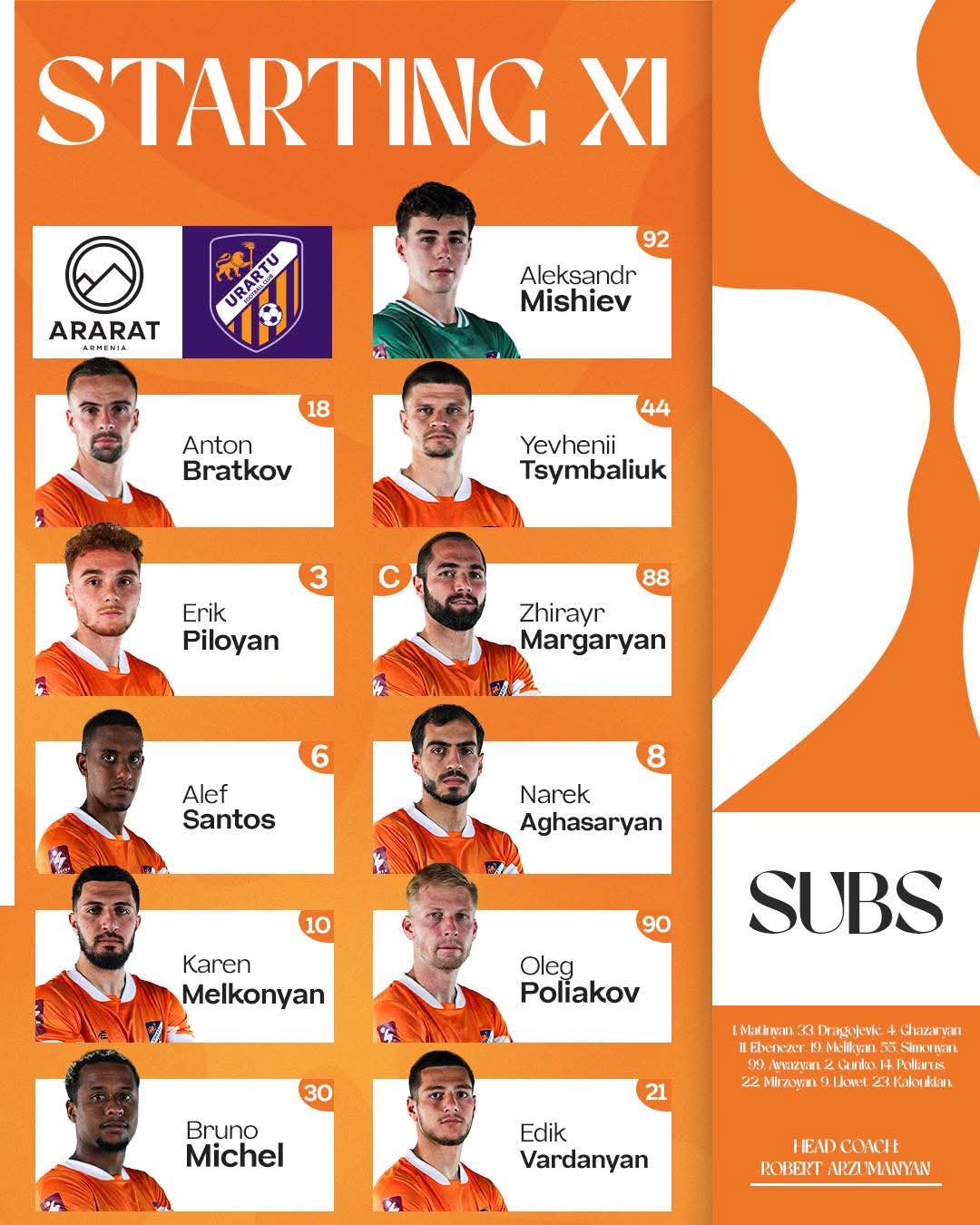 In the 13th round of the Fastex Premier League, Ararat-Armenia will host Urartu at home. Kick-off is at 6:00 PM.