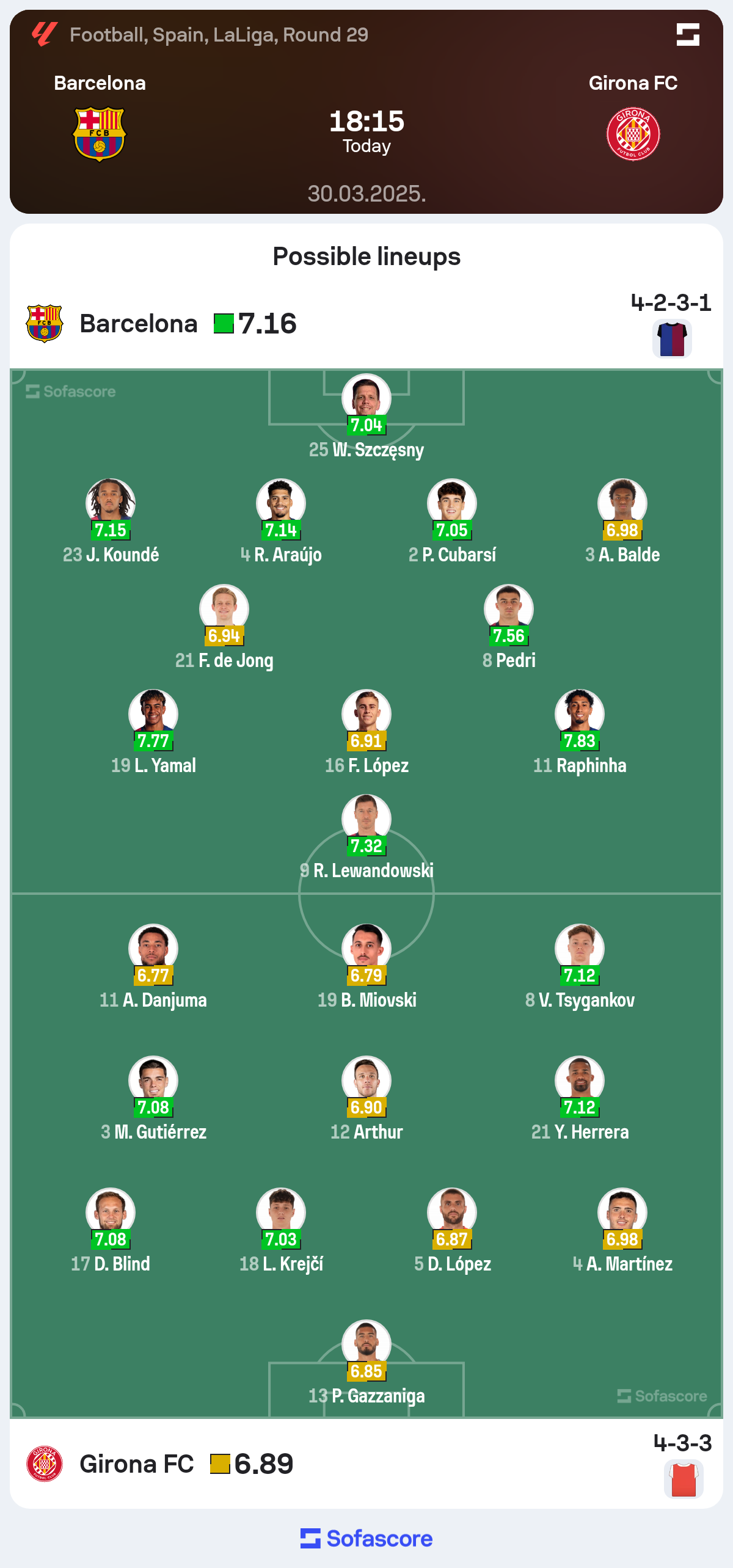 Hansi Flick's Barcelona will host Girona at home in the 29th round of La Liga.